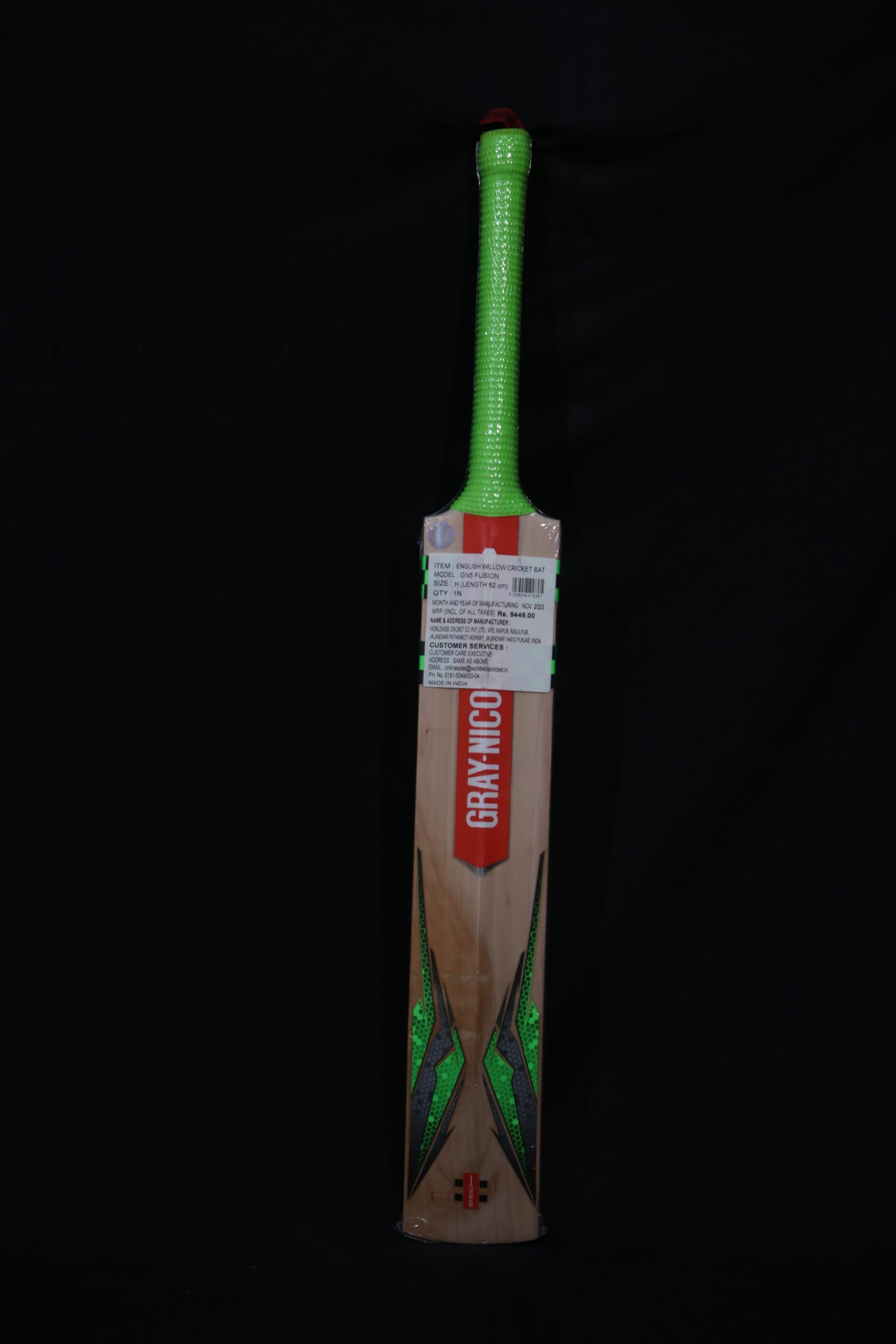 Brand Name: GN Weight: 1061 Gms Grain Pattern: 5 Profile: High Spine Summary: The GN 5 Fusion usually features a modern profile with a full blade and minimal concaving. This design maximizes the size of the sweet spot and provides more power and stability. The bat features a high-quality cane handle, which provides flexibility and shock absorption. This helps in reducing vibrations on impact and enhances comfort. Willow Type: ENGLISH Willow Grade: 3 Best Suited for: Opener/Developing Players/Durability. Handle Type: Oval Handle MRP: 9449 Delivery Time line: Return / Warranty : NO Service: YES Help: 8121212652 Make: Gray Nicolls Hand Picked : NO